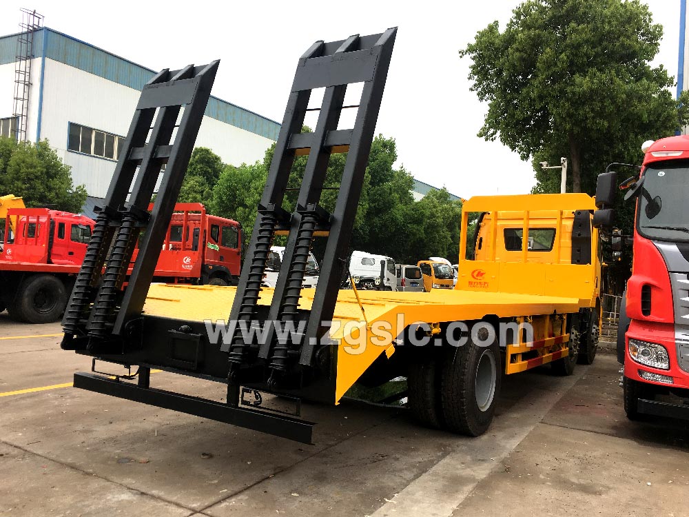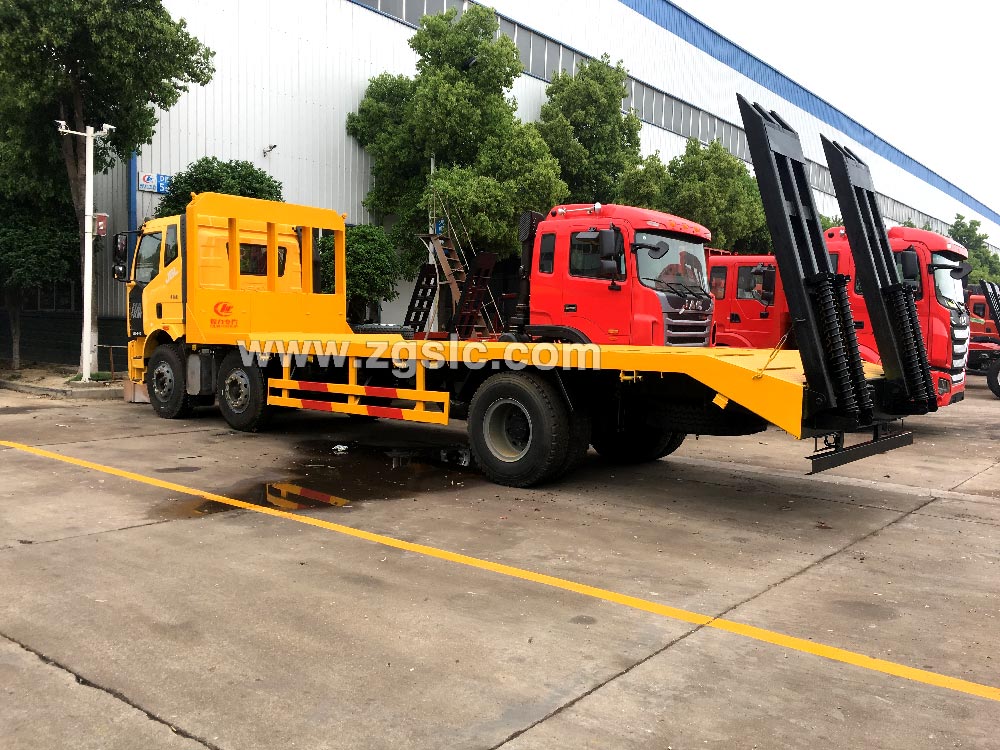 | 上裝配置 | ★ 解放小三軸平板運輸車平板車專用底盤,國五排放標準220大馬力發動機。程力專汽生產的平板運輸車主要用于運輸挖掘機,裝載機,收割機等不可拆卸的工程機械,承重能力強,廣泛用于工廠,工地等大型工程項目中。 ★ 平板面采用5mm厚國標花紋板,橫梁采用100x100x5的國標方管,橫梁加密,每300mm一根橫梁,邊框使用120槽鋼固定,平板運輸車的承載能力更大,受力更均勻;尾部帶有雙彈簧爬梯和可折疊式支腿,爬梯上焊有16的螺旋鋼,板面上也焊有螺旋鋼,挖機上去的時候不會打滑,在挖機上去的時候將支腿放下,4點著力,車頭不會翹起,安全性能更強。 | ||